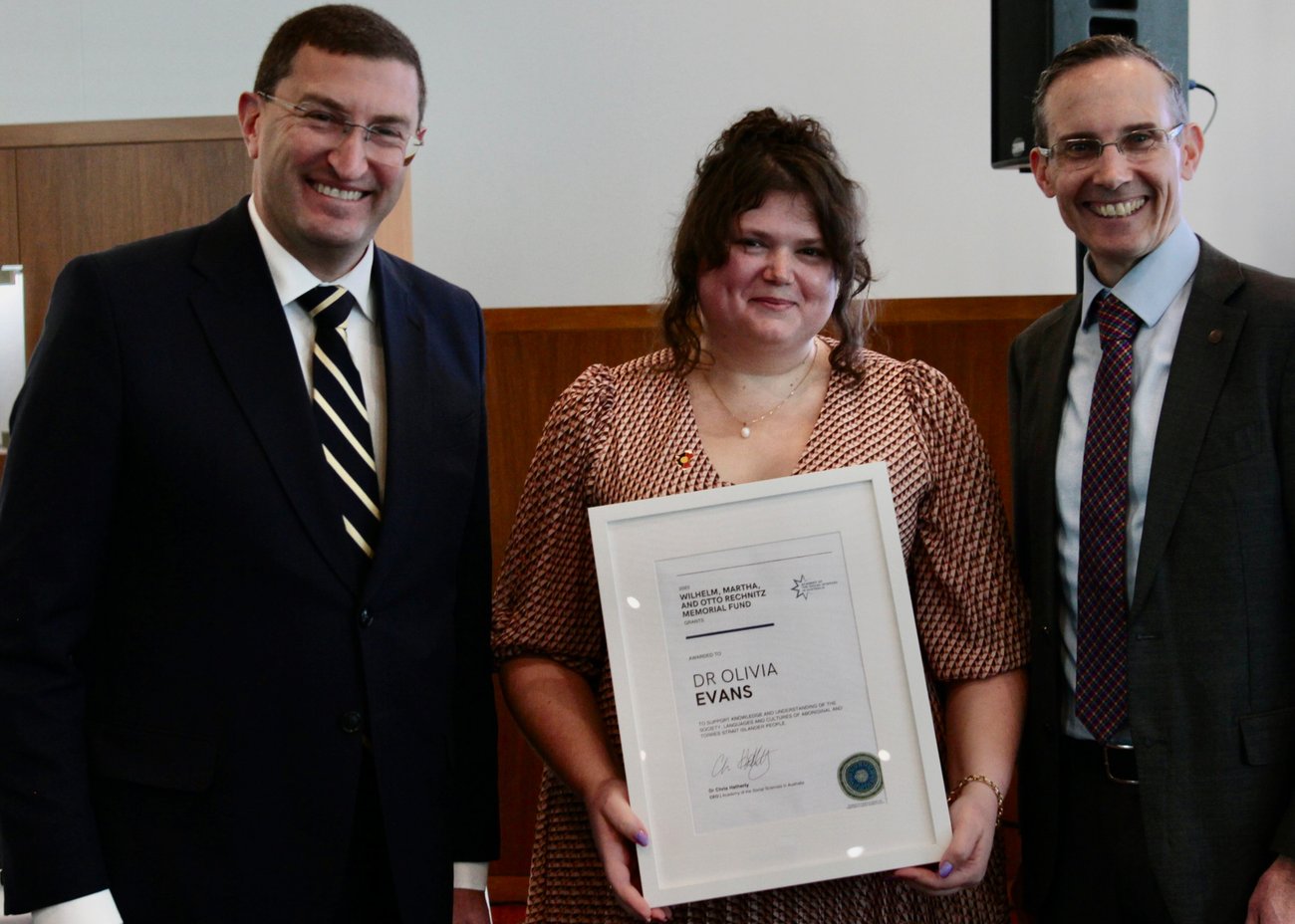 The Academy was delighted to announce Dr Josephine Bourne, Dr Olivia Evans and Dr Jacob Prehn as the inaugural recipients of the Wilhelm, Martha, and Otto Rechnitz Memorial Fund. This fund was established to support First Nations researchers and knowledge in the social sciences. The awards were presented by Hon Dr Anne Aly MP, Minister for Youth, at the Parliamentary Friends of Social Sciences Breakfast to launch Social Sciences Week. More information about these grants and the scholars who received them is available here. Our congratulations to all and we look forward to the outcomes of your research. |