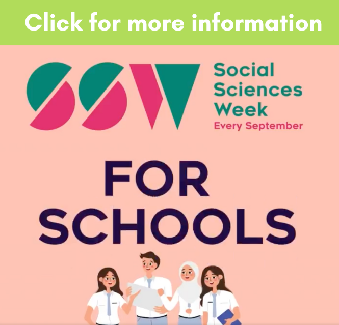 Social Sciences Week (SSW) will take place 8-14 September 2025. There are a range of options for schools to get involved in SSW and we invite you and your school community to connect with us to promote events that you may wish to lead.